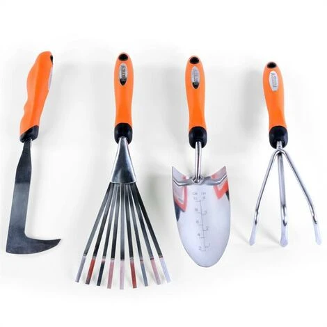 Das Set beinhaltet: Fugenmesser, Gartenharke 3 Zinken, Gartenkralle, Handschaufel.