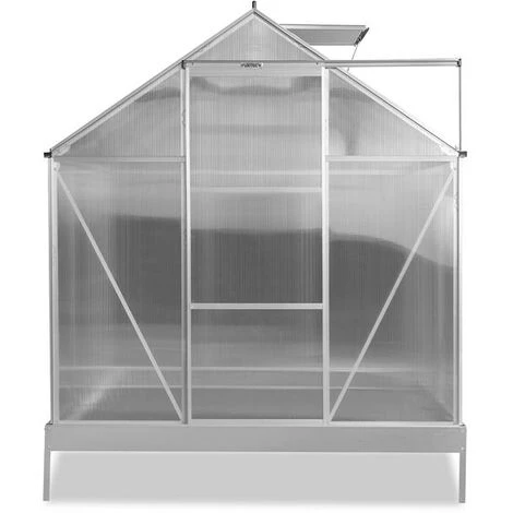 Der Rahmen besteht aus rostfreiem und robusten Aluminium, die Seitenwä nde aus 4mm starken, UV-bestä ndigen PVC-Hohlkammerplatten. Zur Belü ftung des Innenraums befindet sich im Satteldach ein aufstellbares Dachfenster. Sie gelangen in Ihr Gewä chshaus ü ber eine einfache kugelgelagerte Schiebetü r.