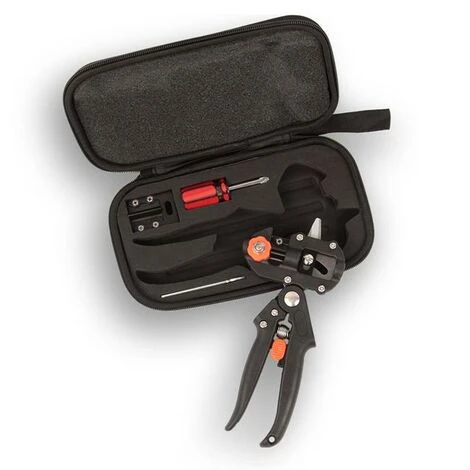 Mit der FX-VSP30 kö nnen Sie vö llig unkompliziert und eigenstä ndig Ihre Obstbä ume veredeln. Wä hlen Sie einfach je nach Umfang/Dicke des Astes eine der drei mitgelieferten Klingen. Im Anschluss schneiden Sie einen Ast von dem zu veredelden Baum mit der FX-VSP30 ab und fü gen Sie das Gegenstü ck von einem Ast eines anderen Obstbaumes Ihrer Wahl in die passende Einkä rbung. Im Anschluss wickeln Sie noch ein trockenes und wasserabweisendes Band fest um die miteinander verbundenen Schnittstellen (mö glichst luftdicht) und schon kann der Veredelungsprozess der Pflanze beginnen.